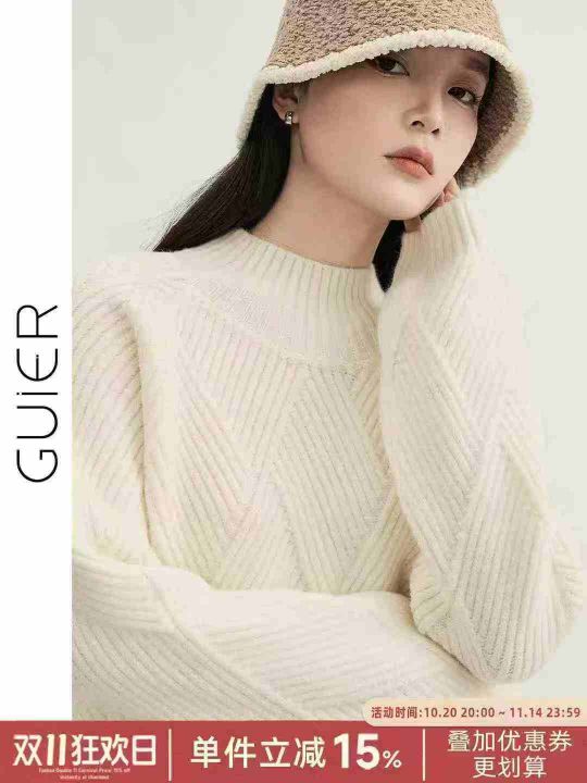 全清11.9,拉夏贝尔白色半高领毛衣女2025春秋...