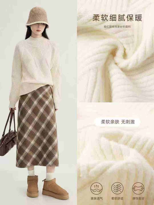 全清11.9,拉夏贝尔白色半高领毛衣女2025春秋新款加厚中领针织打底衫上衣潮,单款单色,均码14件,不分货。