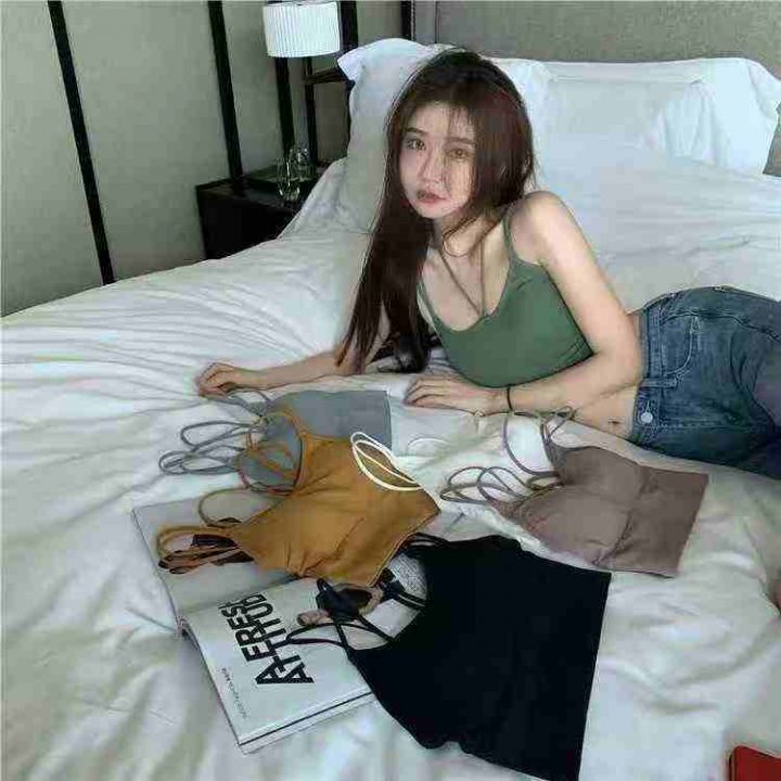 3.9清107件性感褶皱美背吊带背心少女内搭外穿辣妹设计...