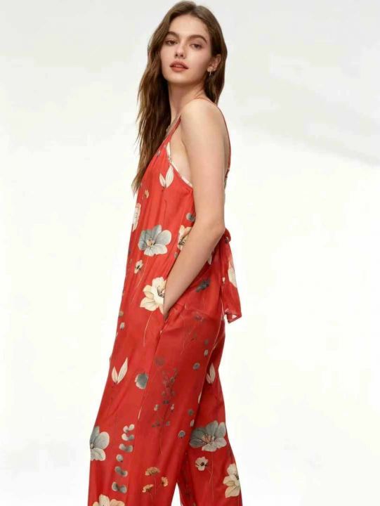 新款跨境欧美女装吊带阔腿宽松居家印花连体裤,独立包装,95件,全清5.8...