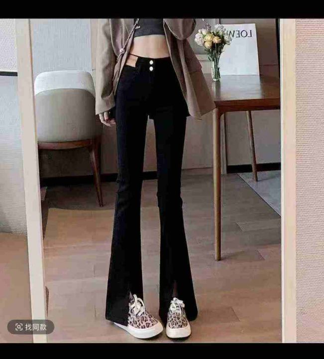 高腰开叉显瘦微喇弹力牛仔裤,整款2色,独立包装,数量550条,25-32码,福...