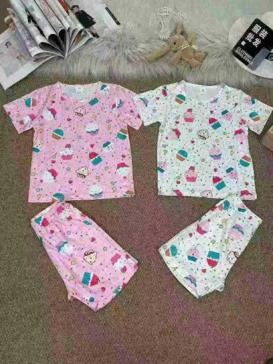 童装短袖短裤冰丝套装,数量630套,单款两个颜色,尺寸90~120码,独立拉链袋原包装。低价批发,8.9秒杀