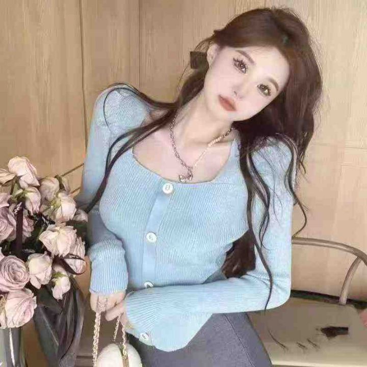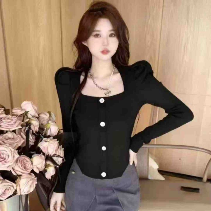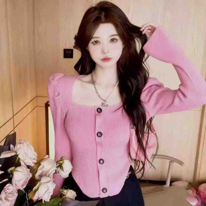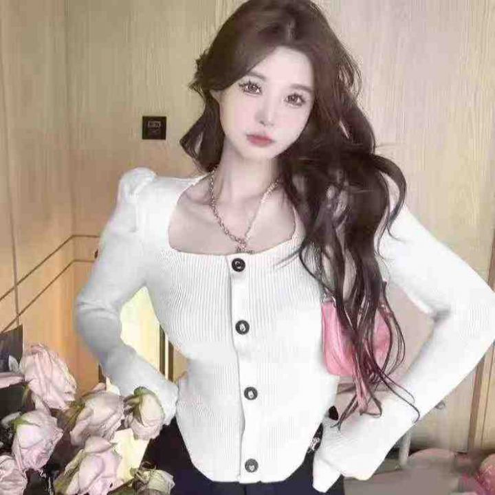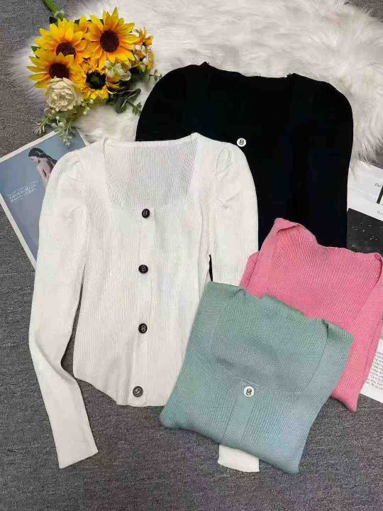 秋冬新款 弹力修身显瘦小香风气质方领排扣弧形泡泡袖针织套头毛衣,独立包装,均码面料软糯舒适弹力大,672件,全清6.9元超低价秒杀!分货加一!