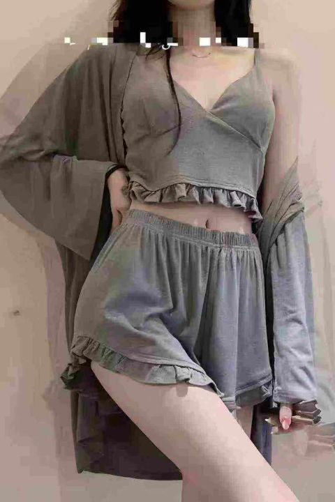 12.8,清386高级灰休闲吊带带胸垫家居三件套,23456码...