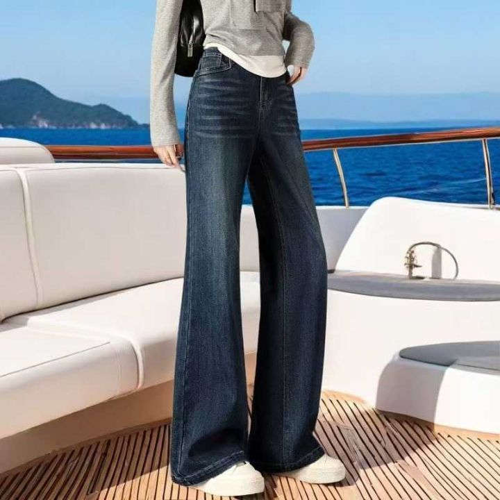 秋冬新款洗水棉网红复古蓝直筒阔腿微喇叭牛仔长裤,独立包装带吊牌,码数M-...