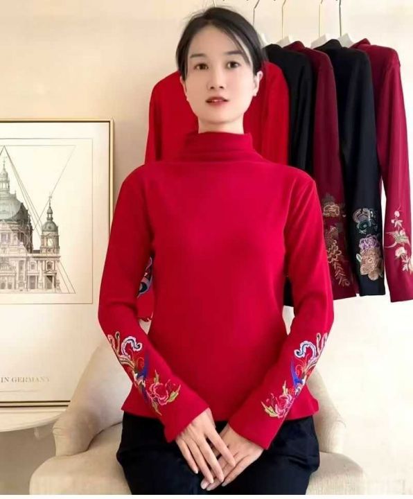 446件,秋冬新款德绒打底文艺复古刺绣百搭上衣民族中式高领保暖德绒长袖T恤,独立包装,码数M-3XL,全清5.8元,分货➕0.5。 货号:1303