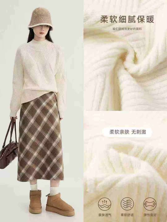 全清11.9,拉夏贝尔白色半高领毛衣女2025春秋新款加厚中领针织打底衫上衣潮,单款单色,均码14件,不分货。