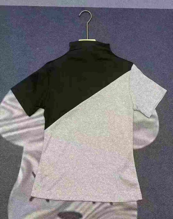 天猫在售款188件左右高品质夏季半高领拼色螺纹短袖T恤,单款单色,高弹力,码数S-XL,独立包装带吊牌