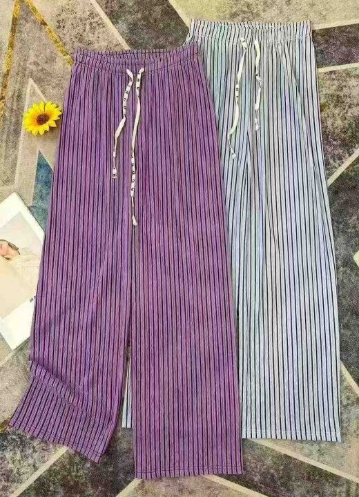 黑丝皱芊芊叶阔腿裤春夏新款高腰修身显瘦褶皱竖条纹百搭休闲女裤,面料舒适,显瘦百搭,显高显腿长[色],这性价比直接拉满✅,200件起分货9.8