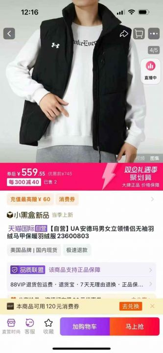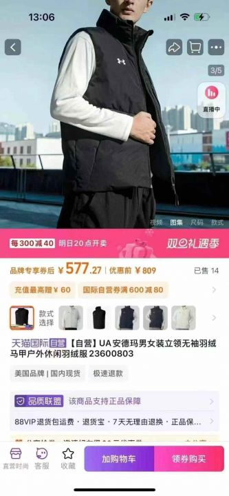 安德玛男女马甲棉服外套600件,S-2XL,扫码。 ...