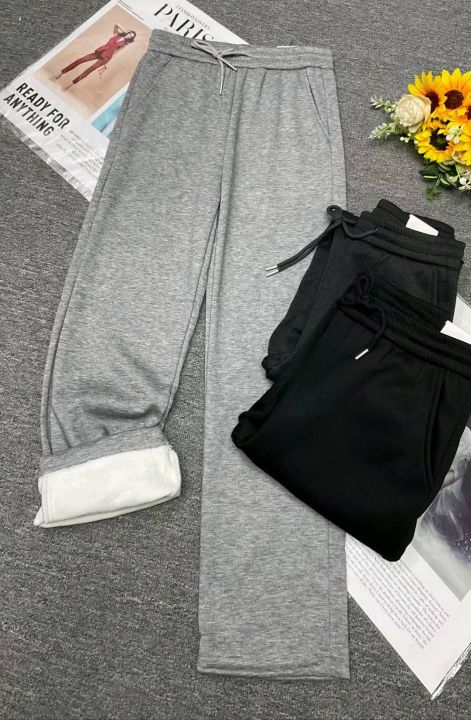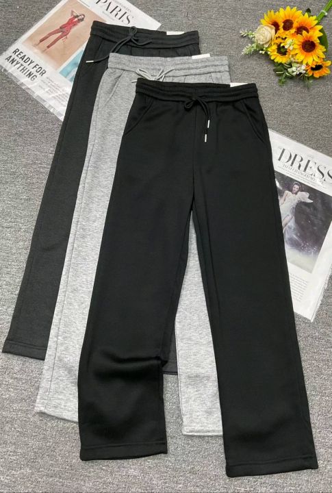 冬季新款韩系净版加绒加厚松紧腰直筒阔腿弹力纯棉休闲...