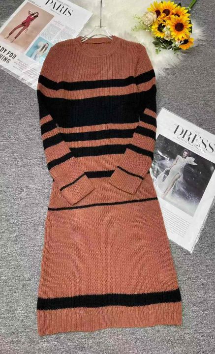 秋冬新款法式复古撞色条纹针织毛衣连衣裙,独立包装,均码面料软糯厚实,91件,全清7.9元超低价秒杀!