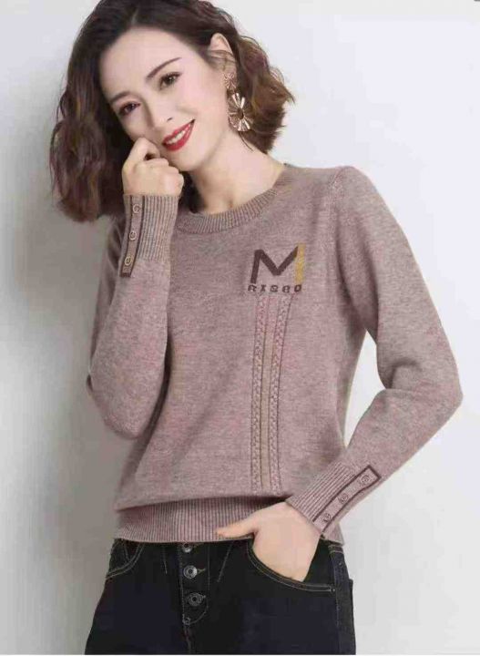 冬季加绒加厚字母提花设计款宽松慵懒风轻熟女装圆领套头毛衣,独立包装,均码面料软糯舒适弹力大,139件,全清7.9元超低价秒杀!