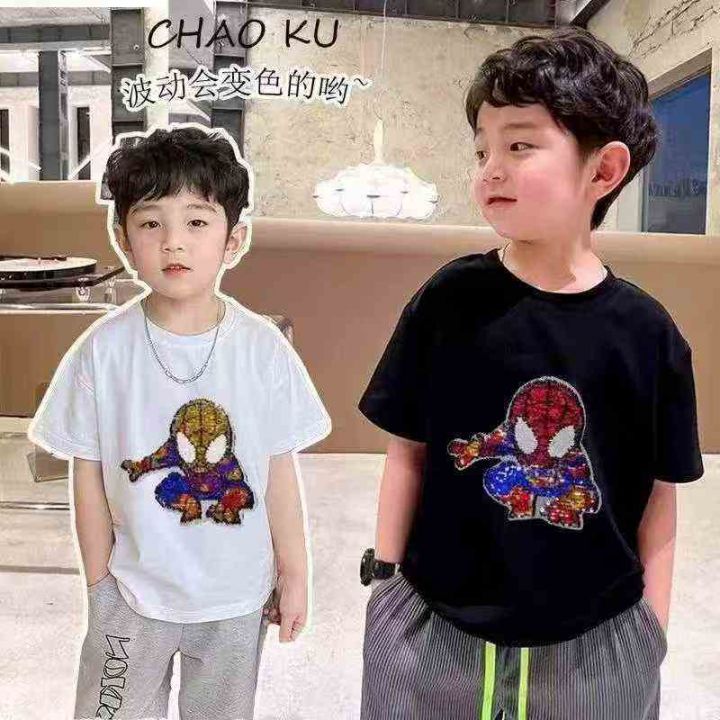 工艺款,儿童纯棉翻转亮片变色短袖t恤