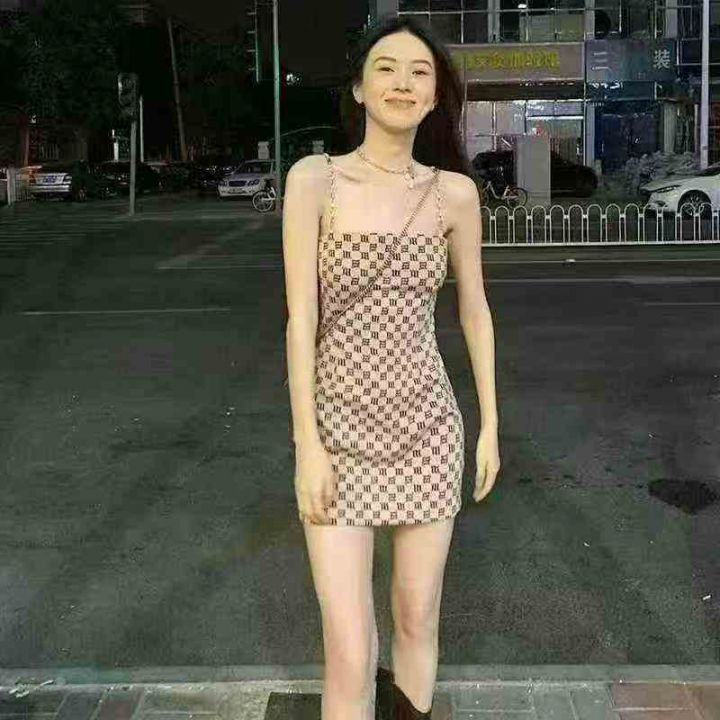 设计感链条吊带连衣裙女2025夏季新款性感气质修身显瘦格子包臀裙,271条,S-XL(1-4码,)独立包装,分货➕1(款号:0609#16)