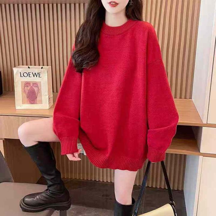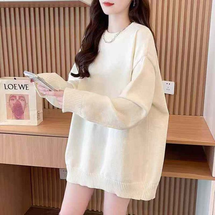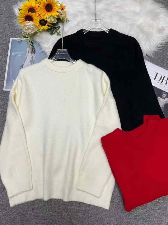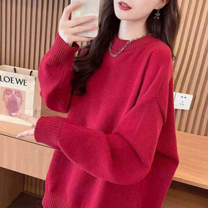 秋冬新款宽松百搭慵懒风圆领包芯纱套头毛衣,独立包装...