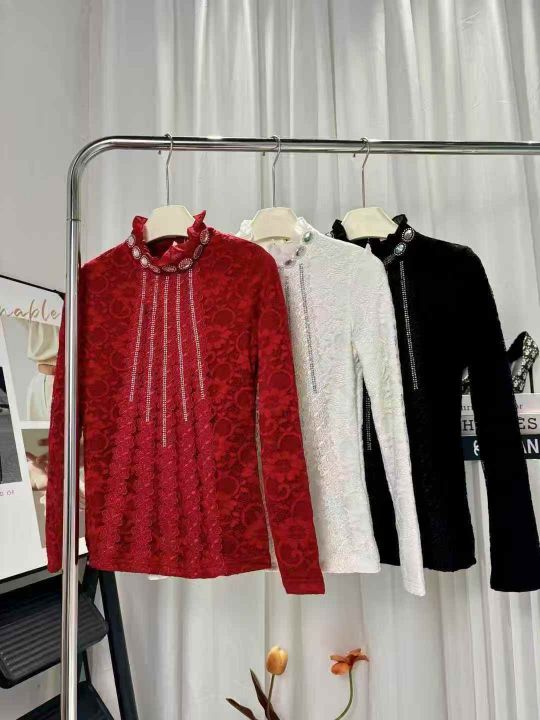 500多件高品质秋冬高领烫钻蕾丝加绒打底衫内搭长袖保暖上衣修身遮肚套头小衫,水溶蕾丝高弹力,不易勾起!内里加婴儿绒!做工质量毋庸置疑!尺码S-M-XL-2XL 独立包装!全清12.8