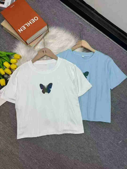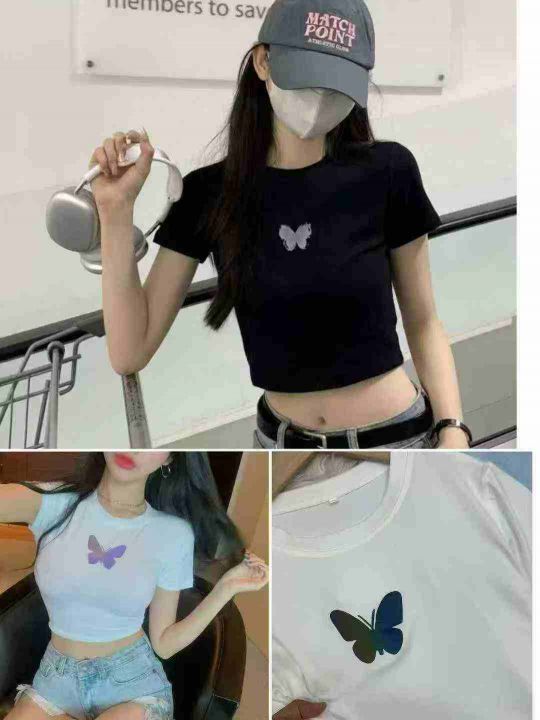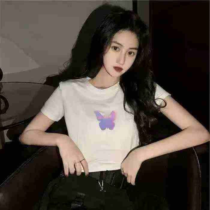 蝴蝶短袖T恤女短款露脐上衣设计感小众辣妹上衣,独立包装,码数1-4码,数量428件,分货加1,货号0912#35
