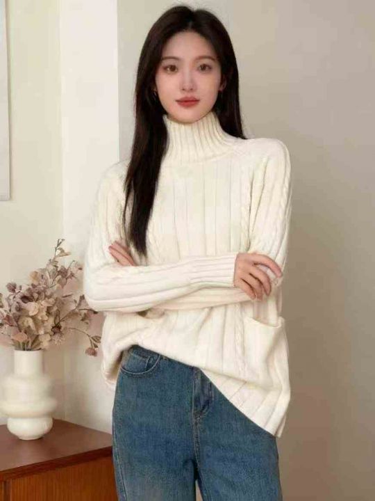 捡漏款,秋冬新款宽松百搭坑条麻花半高领包芯纱套头毛衣,独立包装,均码宽...