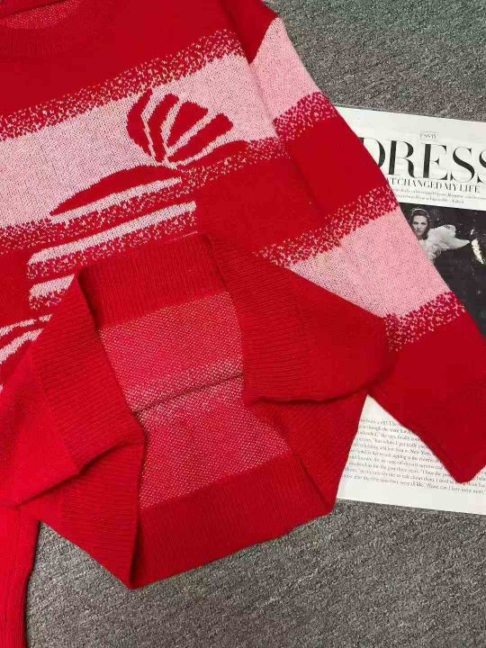 秋冬新款宽松慵懒风乐町草莓奶糖新年红氛围感包芯纱提花钻进套头毛衣,独立包装,均码面料软糯厚实,300件,全清9.9元超低价秒杀!分货加一!