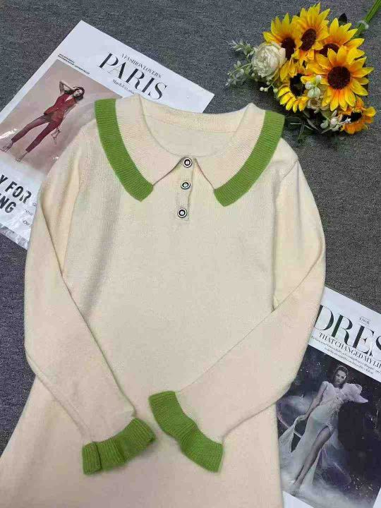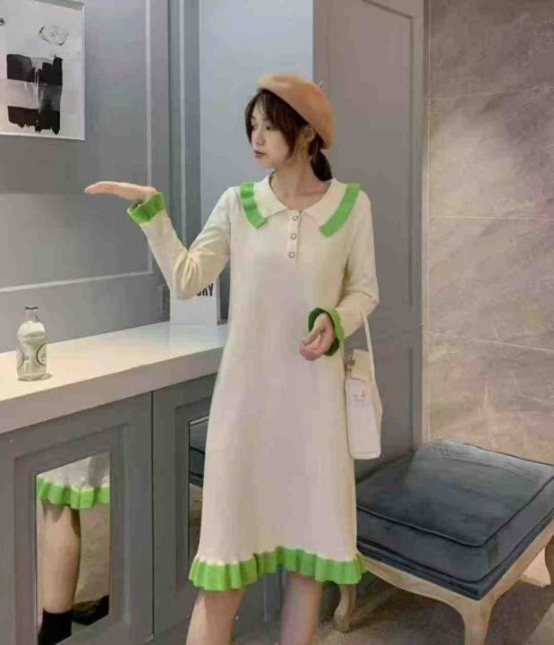 秋冬新款翻领韩版宽松学院风中长款小清新鱼尾针织包芯纱毛衣连衣裙,独立包装,均码面料软糯舒适,宽松版,290件,全清8.9元超低价秒杀!分货加一!