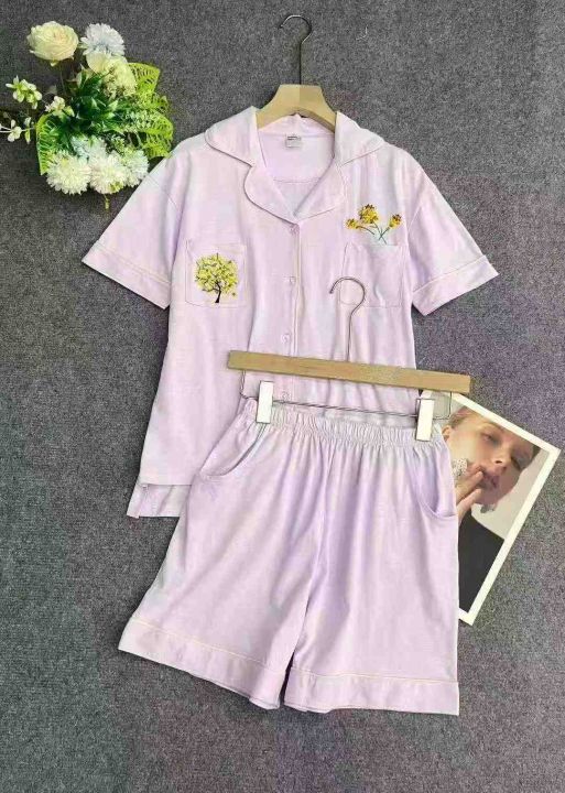 448套纯棉刺绣居家休闲套装。整款两个色,上衣不对称...