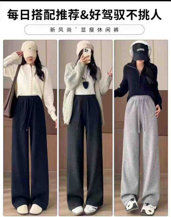 冬季新款韩系净版加绒加厚松紧腰直筒阔腿弹力纯棉休闲...