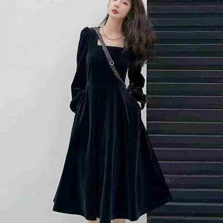 ️226件早秋冬法式小香风小礼服赫本风小黑裙金丝绒秋...