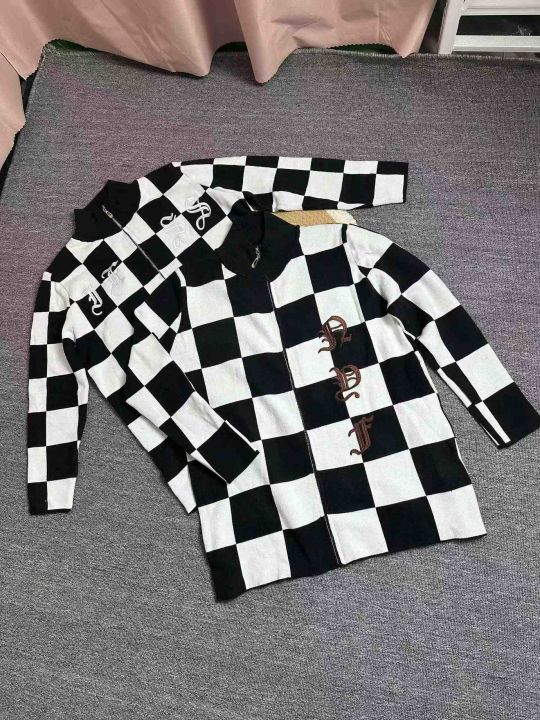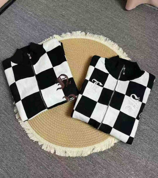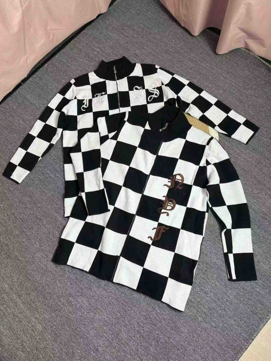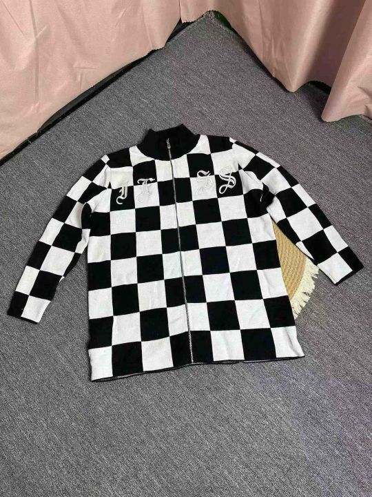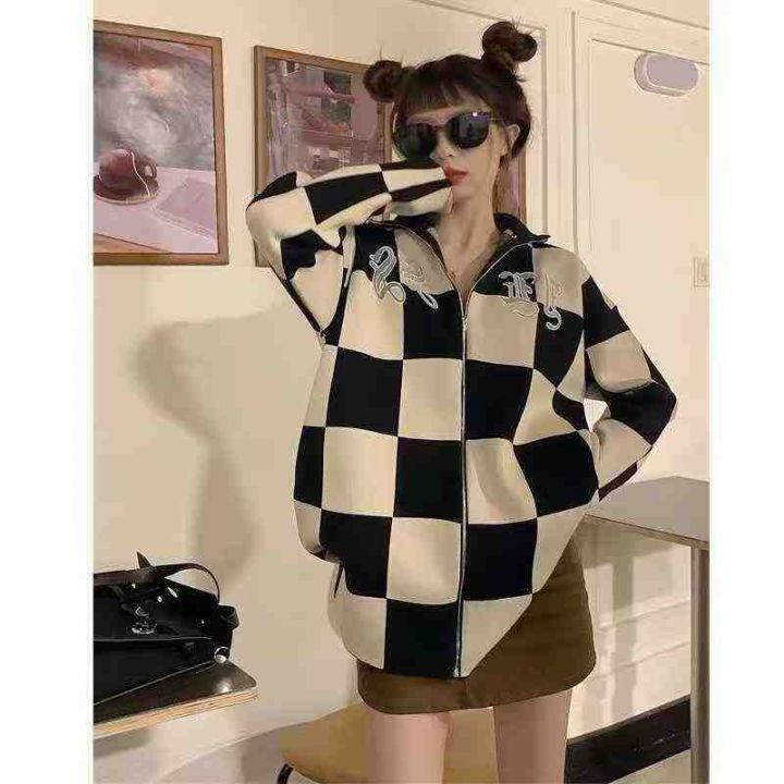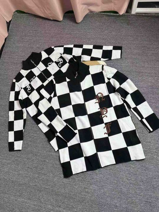 拉链针织衫外套女秋冬美式复古格子设计感小众宽松百搭开衫毛衣潮,独立包装,均码,106件,清8.8