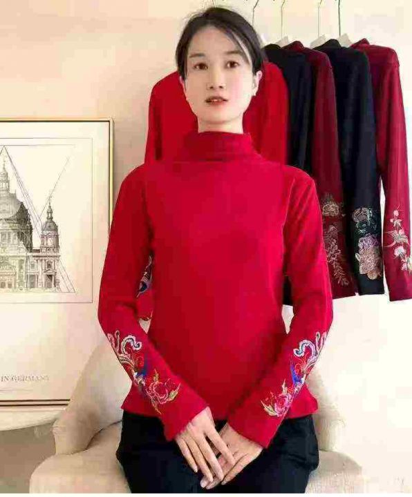 446件,秋冬新款德绒打底文艺复古刺绣百搭上衣民族中式高领保暖德绒长袖T恤,独立包装,码数M-3XL,全清5.8元,分货➕0.5