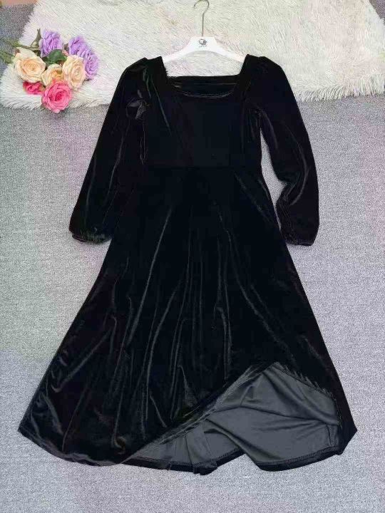 ️226件早秋冬法式小香风小礼服赫本风小黑裙金丝绒秋冬连衣裙,码数M到3XL,版型大,单款黑色,有加绒款,也有不加绒款,独立包装,全清10.8元,分货➕1