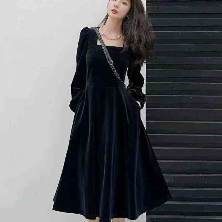 ️226件早秋冬法式小香风小礼服赫本风小黑裙金丝绒秋...