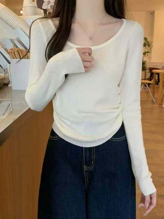 秋冬新款法式气质设计款弹力修身显瘦针织套头羊毛衫,...