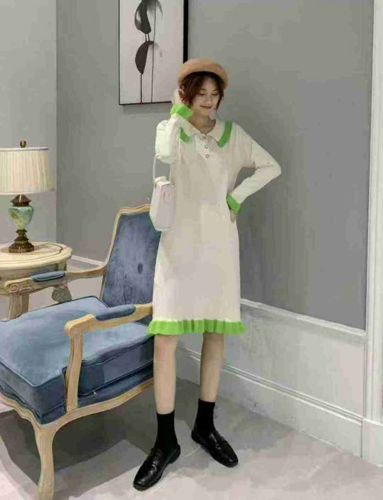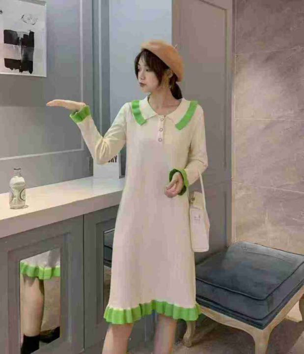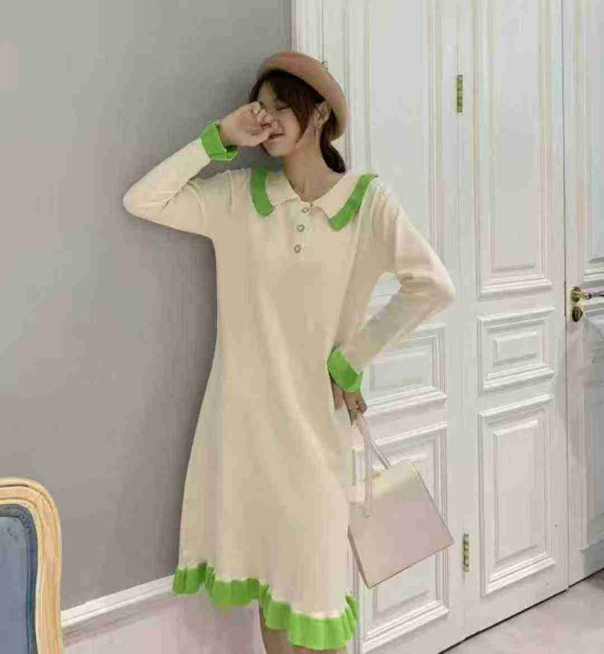 秋冬新款翻领韩版宽松学院风中长款小清新鱼尾针织包芯纱毛衣连衣裙,独立包装,均码面料软糯舒适,宽松版,290件,全清8.9元超低价秒杀!分货加一!