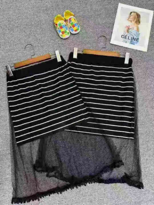 2025夏季休闲新款高腰松紧半身裙显瘦条纹网纱裙,独立...