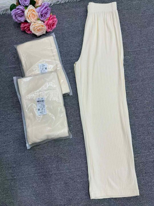 264条.冰丝阔腿裤女夏季薄款米白色高腰垂感休闲直筒裤宽松凉感运动裤子,独立包装,码数:M-XL,全清8.8元,分货➕0.5