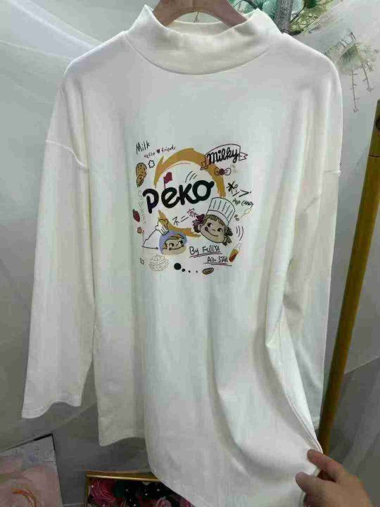 圆领/半高领德绒打底衫女新款内搭宽松白色印花中长款长袖T恤,2种款式,圆领有后领包边,小整款,有少量光版,1到4码,850件左右,独立包装,货品干净,6.8清,分货加1