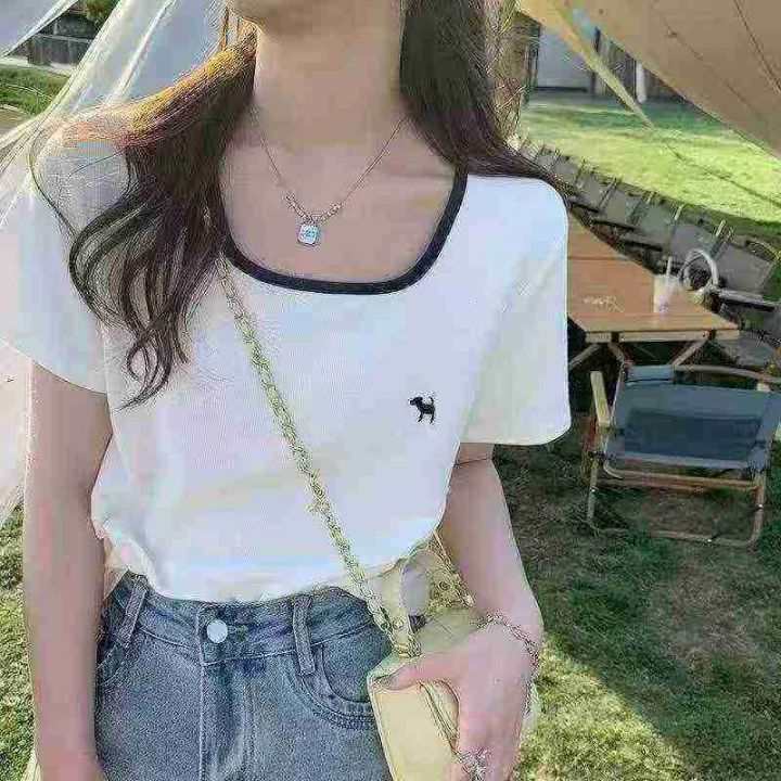 天猫在售款4000件高品质螺纹冰丝夏季宽松法式方领T恤,面料柔软高弹力,单款四色,S-3XL,独立包装