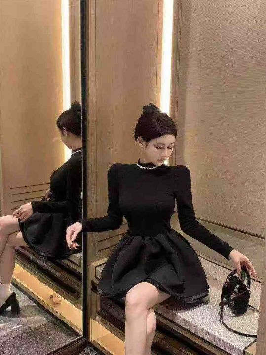 气质半高领连衣裙228件9.9,面料高弹力,拼接设计,收...