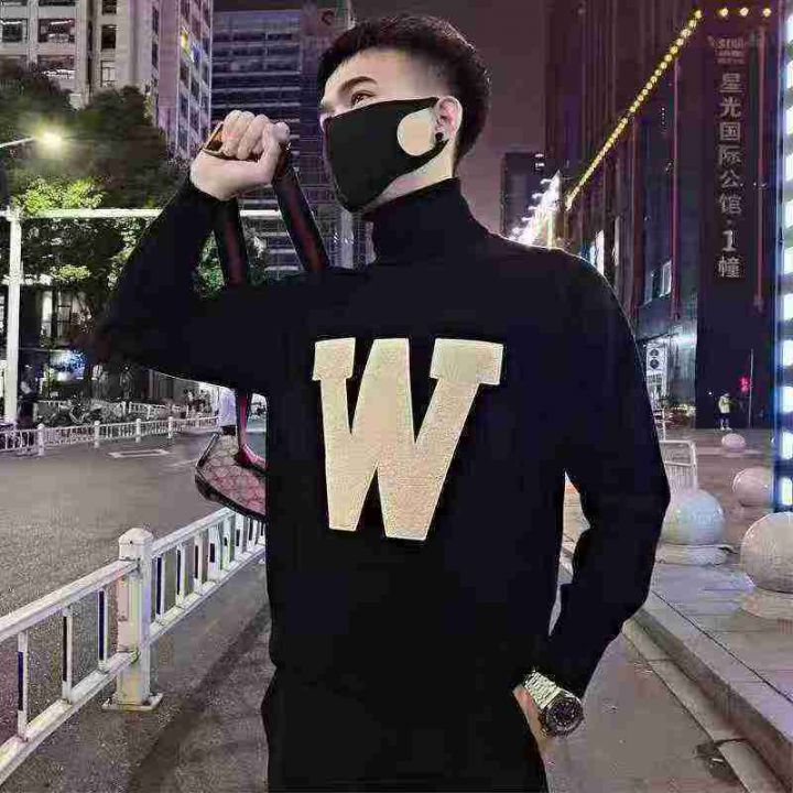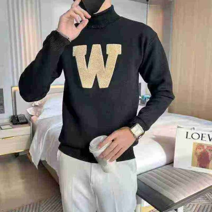 男装毛衣☕️欧洲站潮牌轻奢字母W印花圆领毛衣男秋冬...