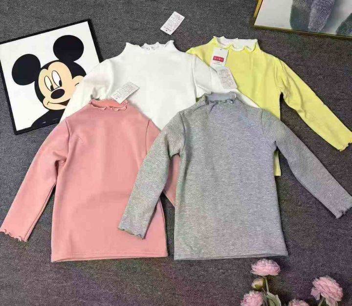 370件左右新款洋气童装花边半高领糖果色系加绒女童打底上衣!两个图片款!一个半高领,一个高领!好几个颜色!尺码90-150,质量做工毋庸置疑!高弹力!独立包装!福利价4.8 不分货