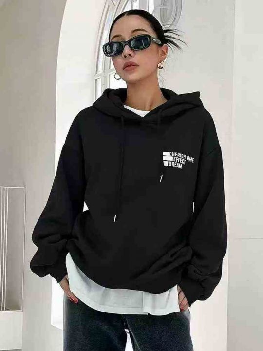900件左右美式字母印花宽松休闲百搭男女同款加绒连帽...