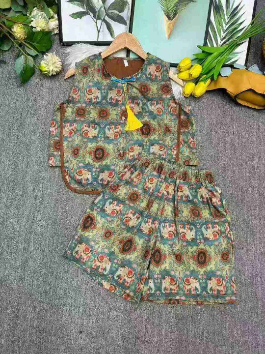 男女童夏季时尚汉服套装洋气中式国风背心短裤两件套,配送流苏,三件套,独立包装,码数80-150码,数量417套,分货加1,货号926#86