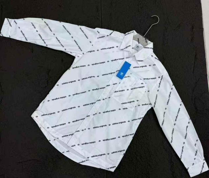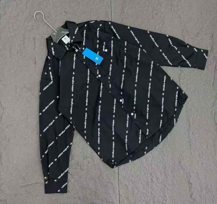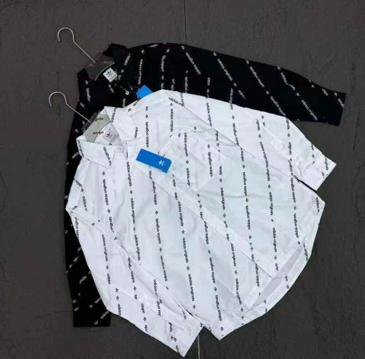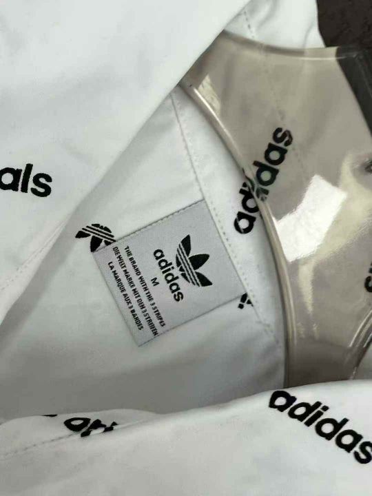 adidas originals三叶草 印花字母满印排扣长袖衬衫 男女同款 黑色 白色 专柜同款 800件处理!配清 100件起配。 货号:33064
