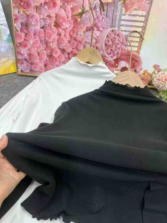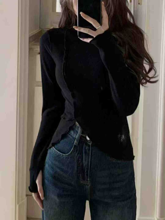 秋冬装螺纹德绒半高领T恤女设计感木耳边修身不规则百搭打底衫上衣潮,整款2色,面料软糯,弹力超大,独立包装,货品干净,1到4码,1350件左右,7.8清,分货加1