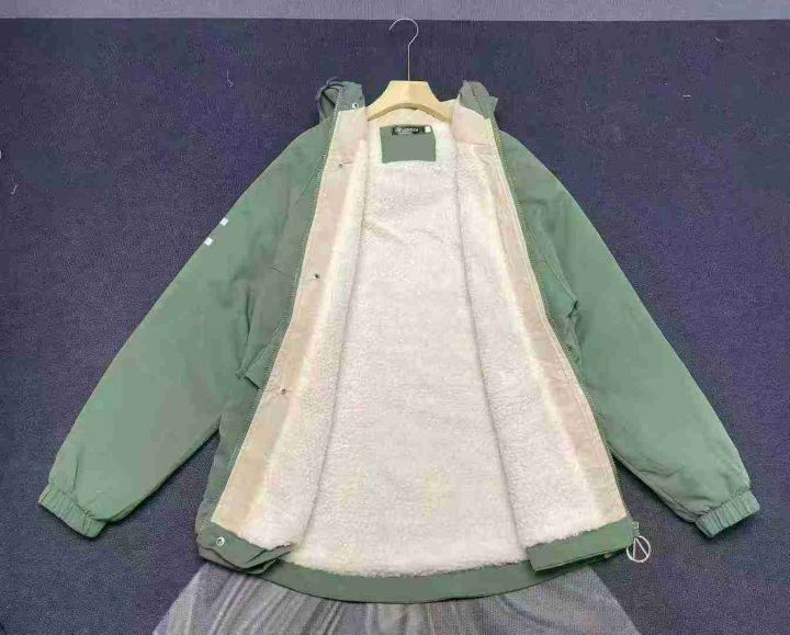 天猫在售款500件左右秋冬款加绒加厚韩版大码潮牌工装连帽外套,内里加超厚羊羔绒,单款单色,M-3XL,独立包装