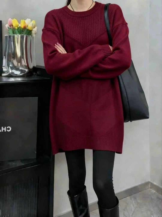 秋冬新款宽松慵懒风中长款那麻花设计款轻熟女装圆领套头毛衣,独立包装,均...