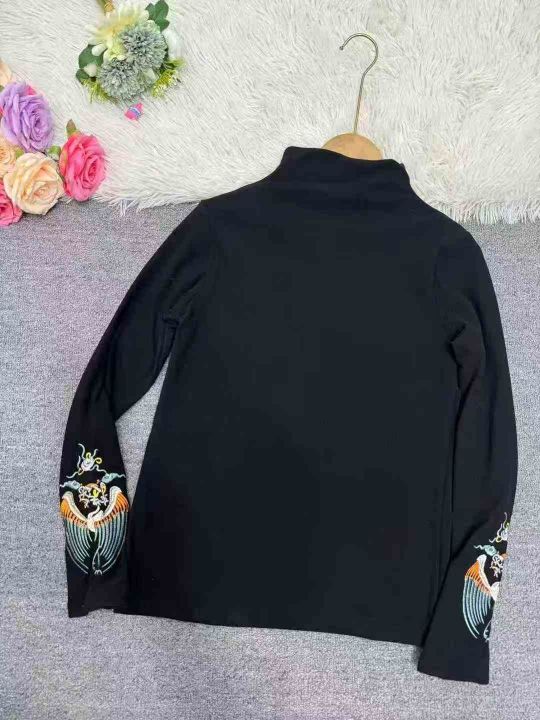 446件,秋冬新款德绒打底文艺复古刺绣百搭上衣民族中式高领保暖德绒长袖T恤,独立包装,码数M-3XL,全清5.8元,分货➕0.5