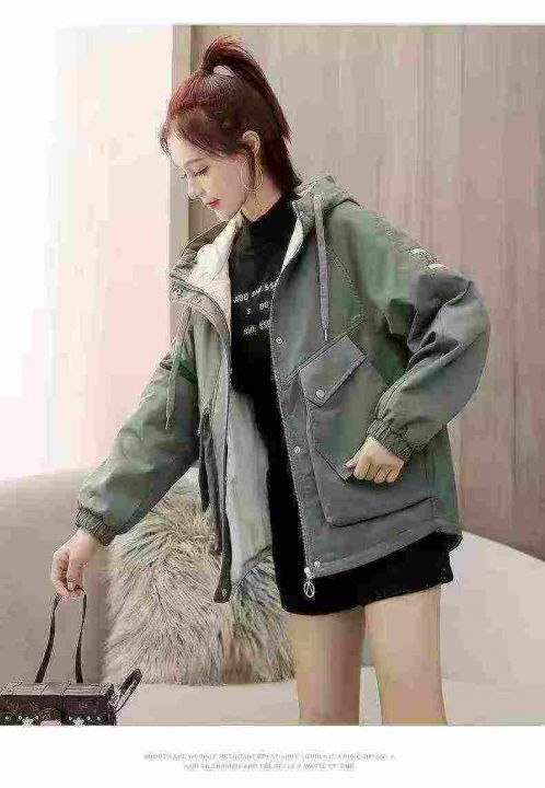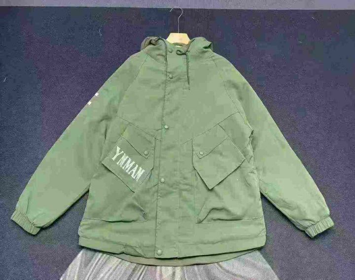 天猫在售款500件左右秋冬款加绒加厚韩版大码潮牌工装连帽外套,内里加超厚羊羔绒,单款单色,M-3XL,独立包装