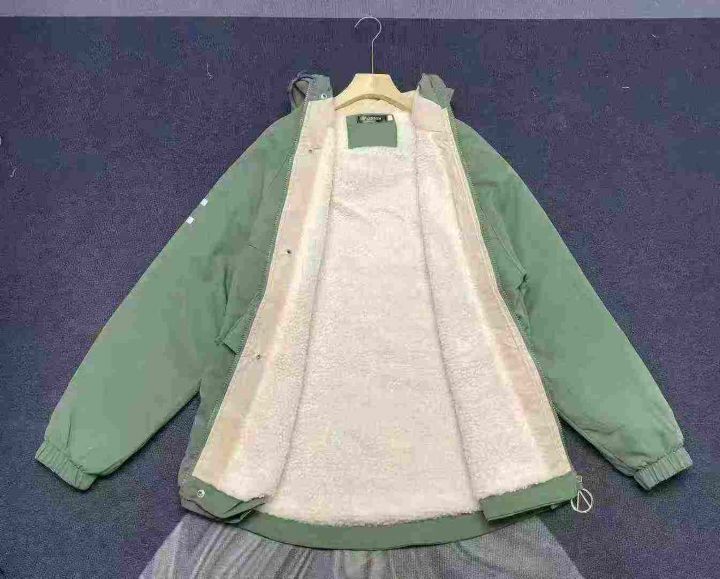 天猫在售款500件左右秋冬款加绒加厚韩版大码潮牌工装连帽外套,内里加超厚羊羔绒,单款单色,M-3XL,独立包装